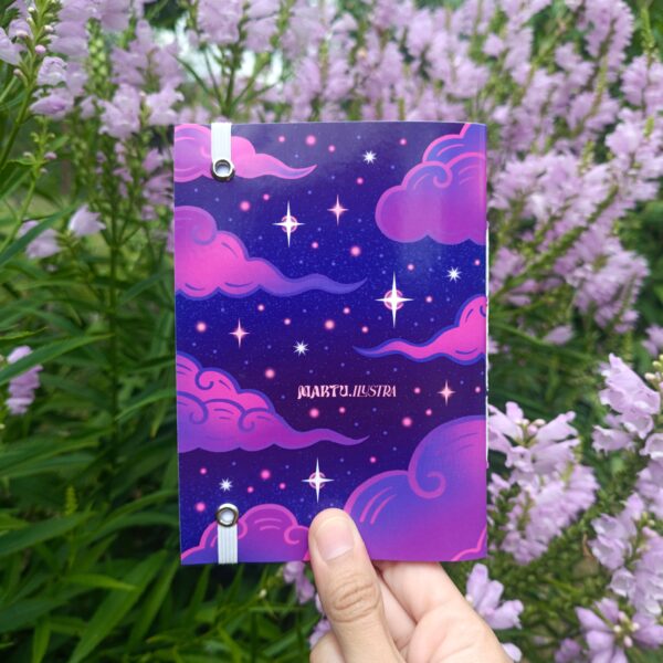 Material: Tapa de 300grs, 40 hojas lisas de 80grs y elástico.
